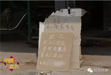 路边,一些小型的红木企业或者加工厂,打出了“招工”的启示。