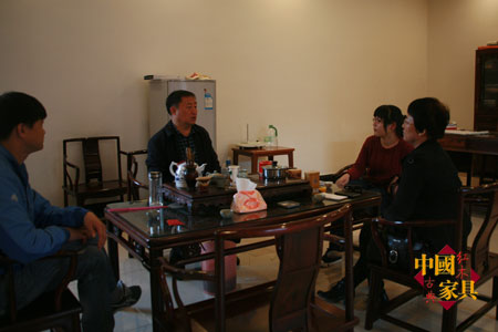 在临街的宝德风古典家具艺术馆3层办公室,宋先生热情地接待了我们。隔着窗口向外望去,7层的新馆已经接近竣工。落座后,话题自然就从他的新馆落成说起。没想到宋先生却说,这个没什么,只是因为现在的展馆比较小,不能设些特色展区,顾客看起来不太方便,所以又建了一个。我们还是谈家具吧。难怪宋先生是世代木工世家,家具永远是他最感兴趣、最令他兴奋的话题。