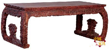 紫檀伽苑小叶紫檀雕水龙几型画案