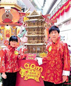 来自河北廊坊市永清县的徐晶晶、徐健高两姐弟,向记者介绍了父亲自创秸秆紮刻艺术的起源,晶晶说:“在我们那儿,有一种传统的紮蝈蝈笼的技巧,很多人都懂得怎样紮,有一年,姥姥生日,爸爸想送一份礼物给姥姥,于是就用紮蝈蝈的手法,再结合建筑的入榫技术,为姥姥做了一个八仙过海花灯。经过这次,爸爸就开始研究紮刻艺术,我们家十三代都是做木匠的,因此爸爸对木建筑的结构及制造非常熟悉,在他十七岁那年,爸爸完成了真正的第一件作品《天安门》,更被选送往日本长野县展出,以庆祝中日建交二十周年。”